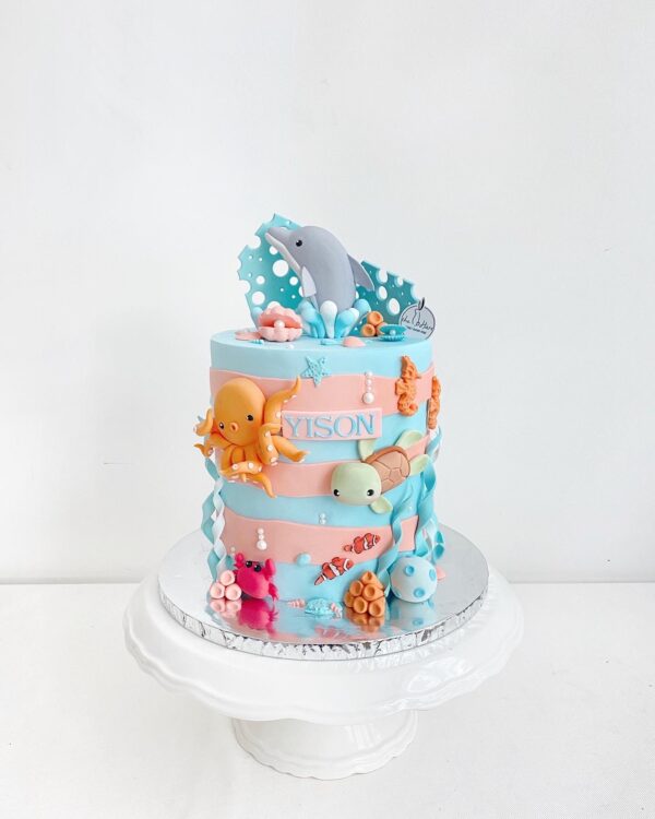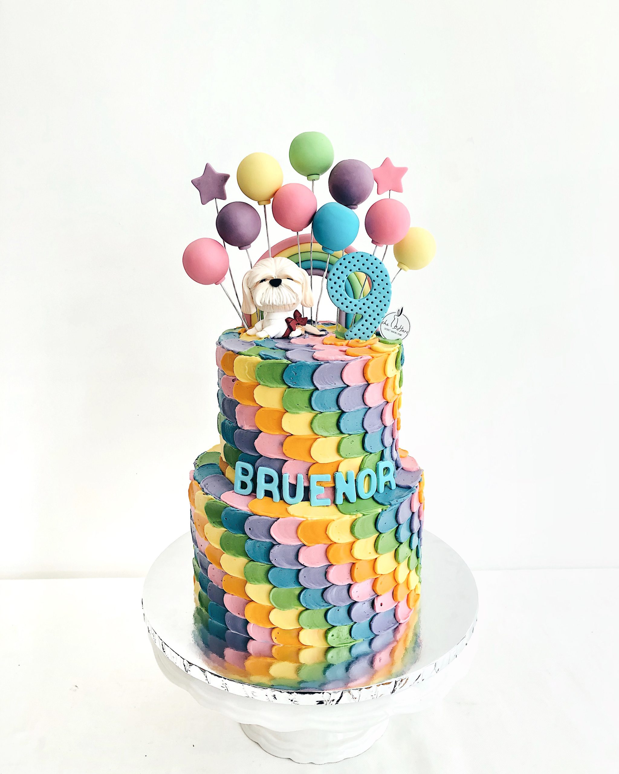 Show your love for your furry friend with this delightful 2-tiered rainbow cake, featuring charming Shih Tzu fondant figurines and colourful fondant stars and balloons.